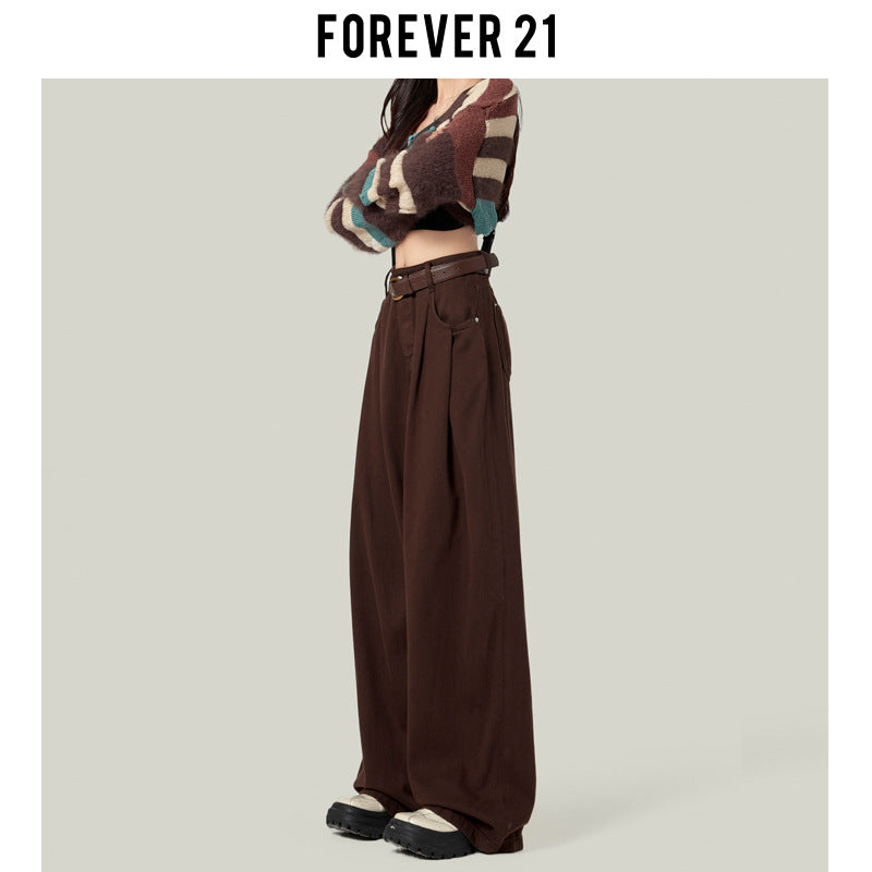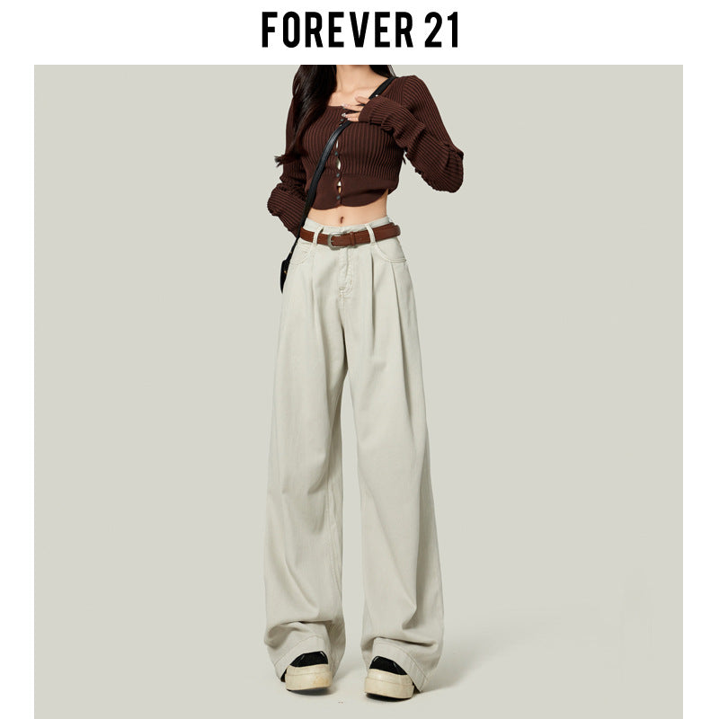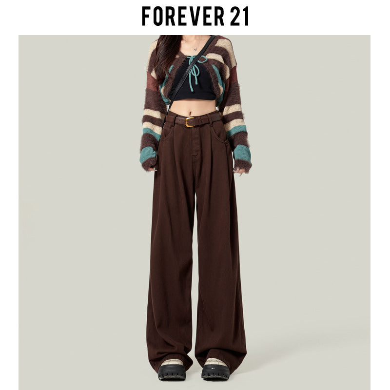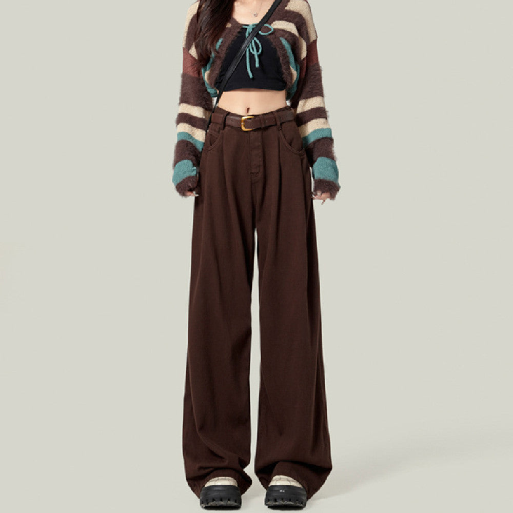 Coffee-colored Wide-leg Casual Jeans For Women