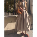 High-waisted Pleated Midi A-line Maxi Skirt